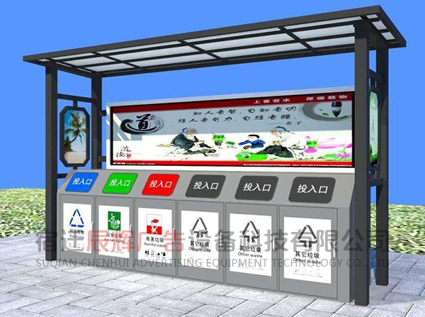 垃圾分類亭一般放在小區(qū)或者公共的地方集合垃圾之用。同樣的材料也可制成配電房、報(bào)亭、崗?fù)?、景區(qū)休息室等。宿遷辰輝廣告設(shè)備科技有限公司,我們的產(chǎn)品豐富多元化,應(yīng)用場景廣泛,也可以根據(jù)客戶的需要來圖定做。